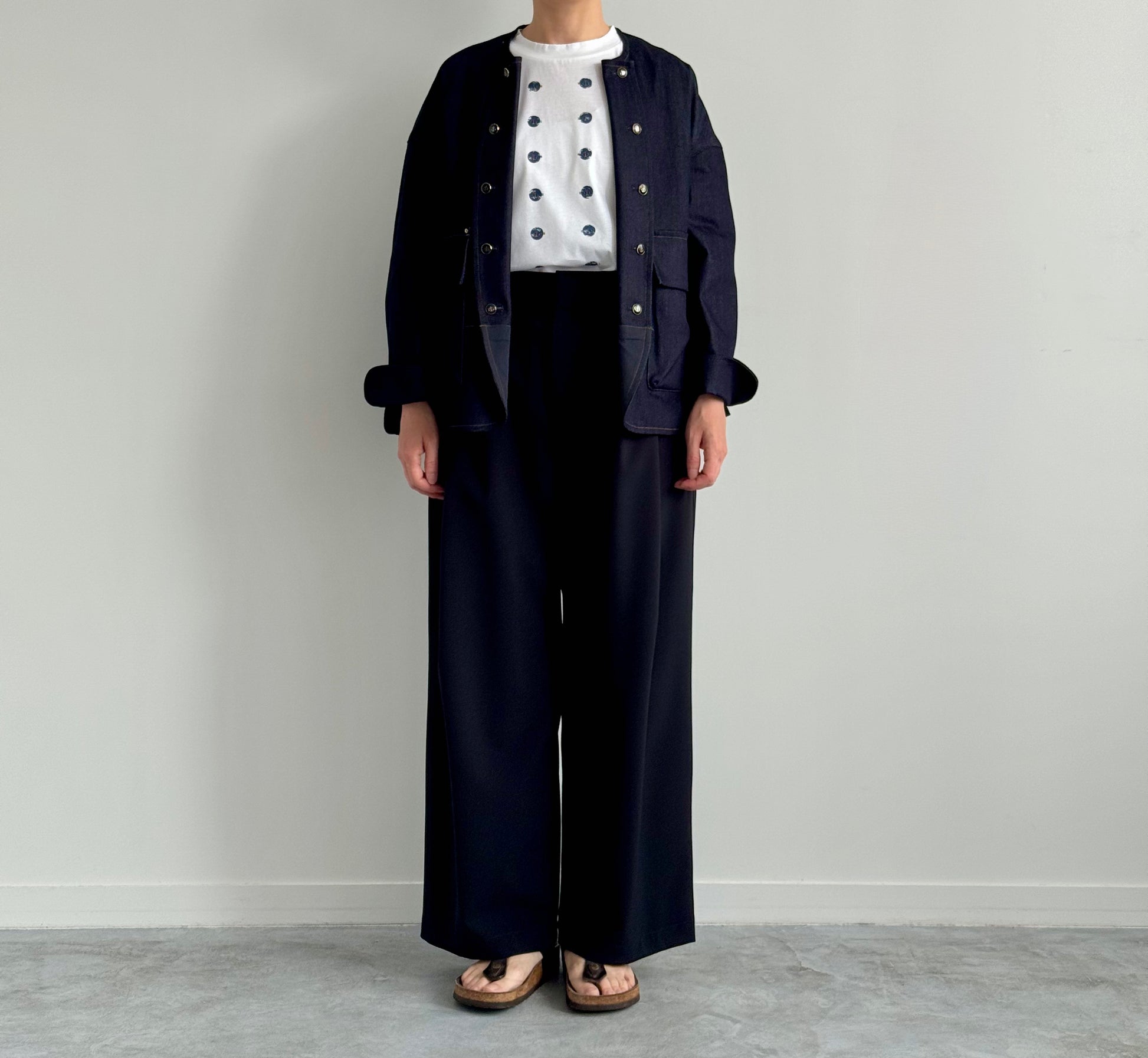 黒に近い濃紺です。同じ生地でワンピースもあります。
