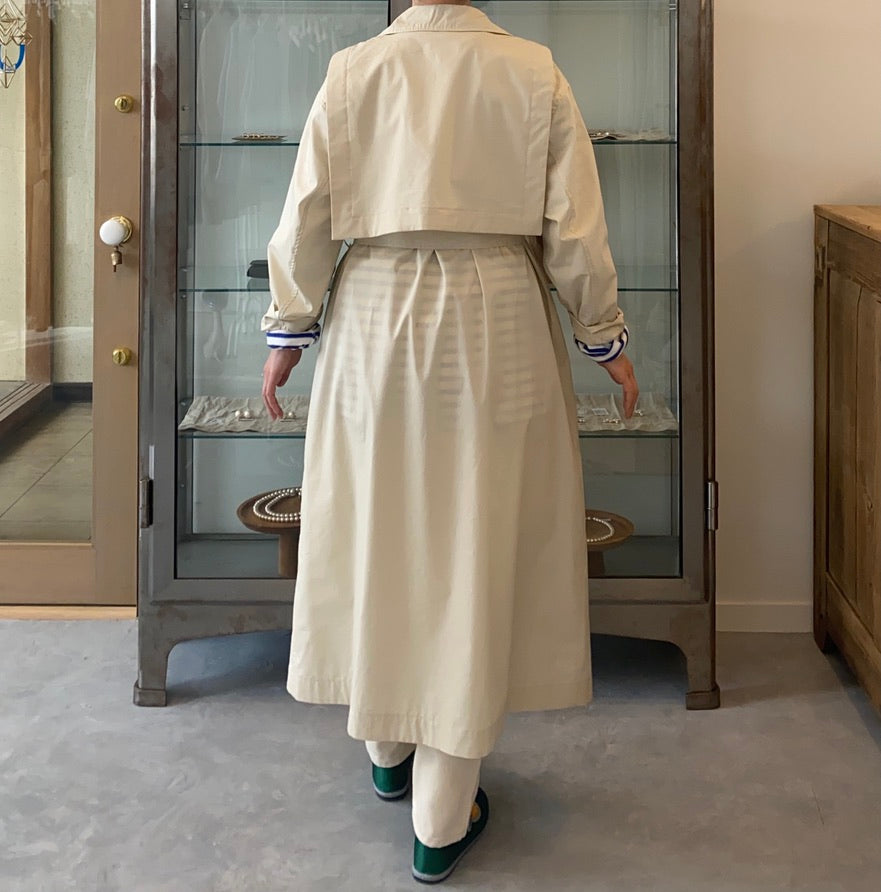 こちらは春にぴったりのコートと手刺繍の素敵なシルクドレスの組み合わせ。